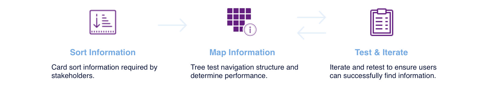 • Create information architecture hypotheses based on the feedback from users